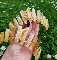 Tiara de piedra de cristal Natural, aro de pelo de cristal de cuarzo crudo, Luna, corona de bruja hecha a mano