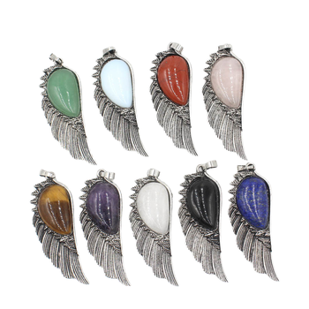 Collier pendentif vintage en pierre naturelle pour homme avec charme d'aile en cristal d'aventurine verte